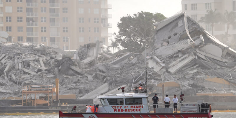 The 23-story building, which opened 25 years ago, collapsed in less than 20 seconds following blasts that occurred around 8:30 a.m.