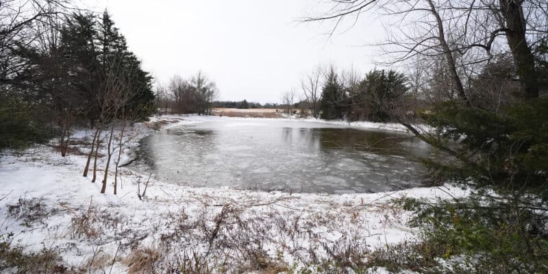 A pond where neighbors say three young boys died after falling into the water is seen Tuesday, Jan. 27, 2026, in Bonham, Texas. (AP Photo/Julio Cortez)