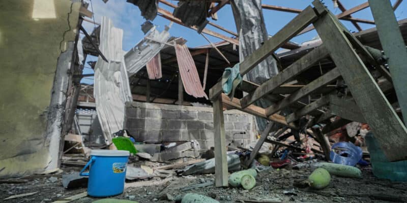 This shows a house which, Thai local security forces say, was damaged by a Cambodian artillery strike in Surin province, Thailand, Thursday, Dec. 11, 2025. (AP Photo/Sakchai Lalit)