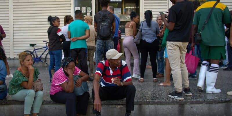 People wait their turn to enter a bank in Havana, Cuba, Wednesday, April 1, 2026. (AP Photo/Ramon Espinosa)