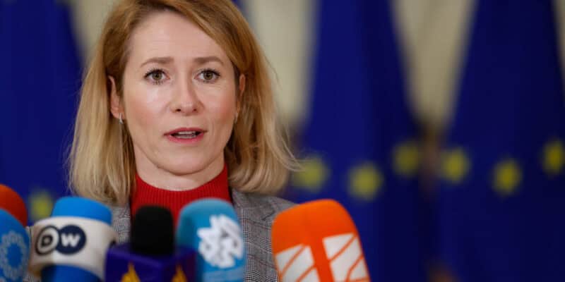 European Union foreign policy chief Kaja Kallas speaks with the media as she arrives for a meeting of EU foreign ministers at the European Council building in Brussels, Thursday, Jan. 29, 2026. (AP Photo/Geert Vanden Wijngaert)
