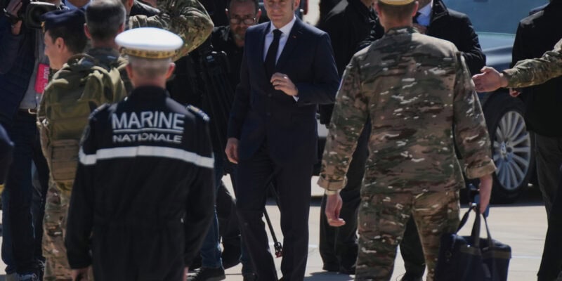 (AP) — French President Emmanuel Macron traveled to Cyprus on Monday, days after dispatching a warship to the east Mediterranean island nation, where a Shahed drone struck a British air base on its southern coast last week during the Iran war.