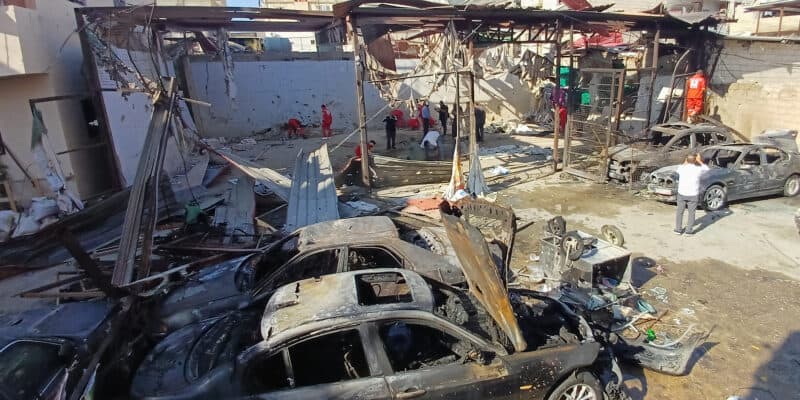 In the Ein el-Hilweh refugee camp, just outside the port city of Sidon, life appeared normal Wednesday but Lebanese authorities prevented journalists from entering. At the scene of the strike, paramedics searched for human remains around a wall that was stained with blood. Several cars were burnt and broken glass and debris littered the ground.