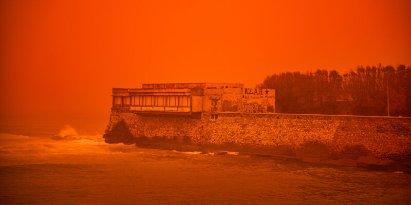 The sky’s surreal red hues were reminiscent of apocalyptic scenes over Crete where the storm that hit the island with gale-force winds combined with a Saharan dust storm.