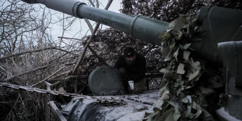 In this photo provided by Ukraine's 24th Mechanized Brigade press service, servicemen fire a 2S1 Gvozdika self propelled howitzer towards Russian positions near Chasiv Yar town, Donetsk region, Ukraine, Sunday, Jan. 18, 2026. (Oleg Petrasiuk/Ukraine's 24th Mechanized Brigade via AP)