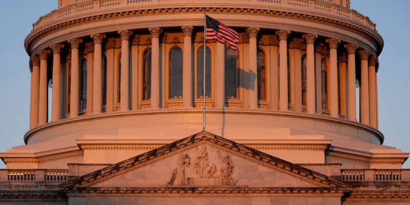 The Capitol is illuminated at dawn in Washington, Monday, Oct. 6, 2025. (AP Photo/J. Scott Applewhite)