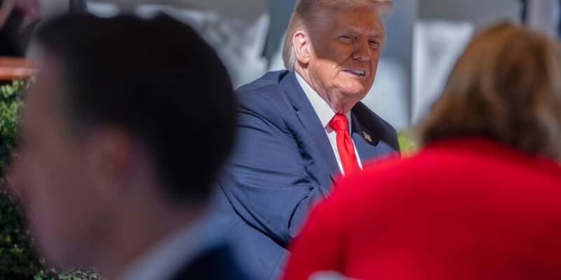 “We have the hottest country anywhere in the world, which tells you about leadership,” Trump said in opening remarks, extolling the renovations underway as senators took their seats in the newly-paved over garden-turned patio.