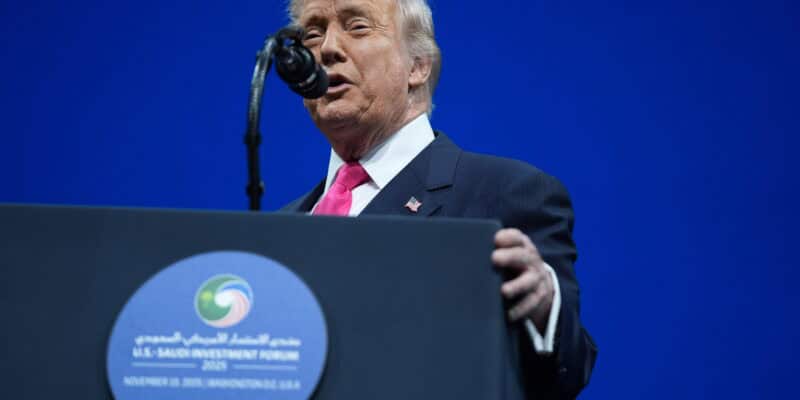 President Donald Trump speaks during the Saudi Investment Forum at the Kennedy Center, Wednesday, Nov. 19, 2025, in Washington. (AP Photo/Evan Vucci)