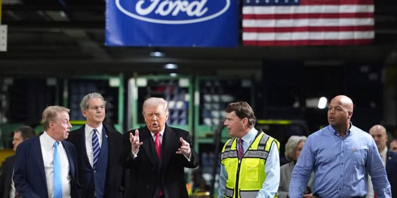 DETROIT (AP) — President Donald Trump toured an assembly line making Ford F-150 pickups on Tuesday, part of a Michigan trip meant to promote his efforts to boost U.S. manufacturing and counter fears about a weakening job market and still-rising prices hurting Americans’ pocketbooks.