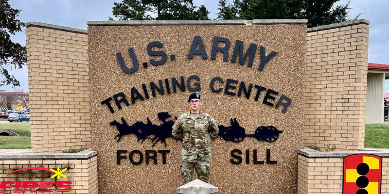 This photo provided by Andrew Coady shows his son, Declan Coady, posing for a photo on the day of his graduation at U.S. Army Training Center at Fort Sill, Okla., March 15, 2024. (Andrew Coady via AP)